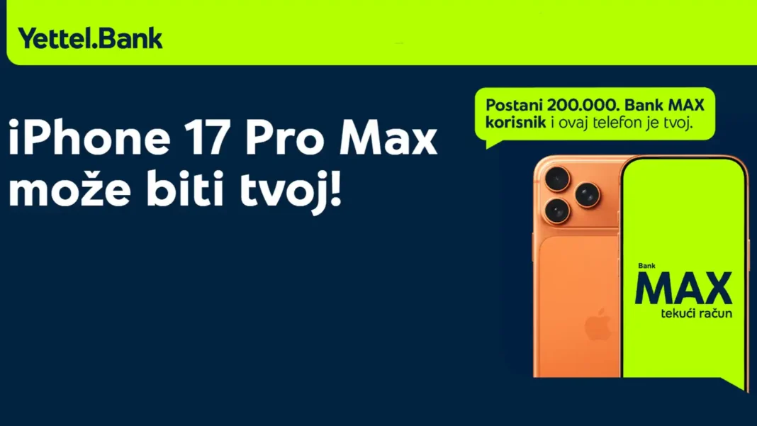 Iphone 17 Pro MAX pripada hronološki 200.000. korisniku Bank MAX tekućeg računa Yettel Bank ad Beograd u skladu sa verodostojnim podacima iz sistema Banke.